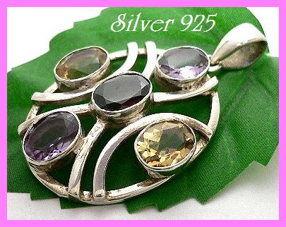- シルバー925銀の天然石シトリン2石×アメジスト2石×ガーネット ペンダント/多面カット ジュエリー