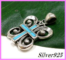 - シルバー925銀のターコイズ クロス 蝶ちょうちょ型ペンダント/100種以上有