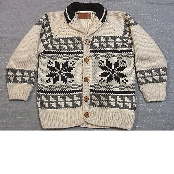 - カウチンカーディガン カナダ製・木ボタン M位 青系柄・SHEPHERD