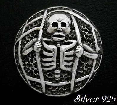 - シルバー925銀のプリズンブレイク スカル髑髏コンチョ/ボタン パーツ