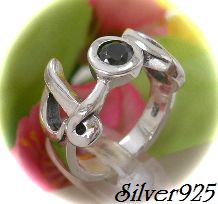 - シルバー925銀のLOVEオニキス付ピンキーリング/3号5号より