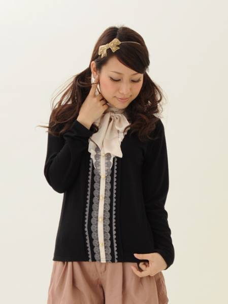 > 312◇ボウタイクラシックプルオーバー 黒 ブラック axes femme アクシーズ ファム TS33X28
