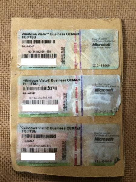 - A3976)Fujitsu Windows Vista Business OEMAct 正規プロダクトキーシール 3枚
