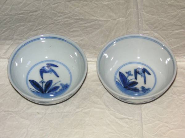 - 猪口 茶碗 湯呑 燕子花図 2客 角福 染付