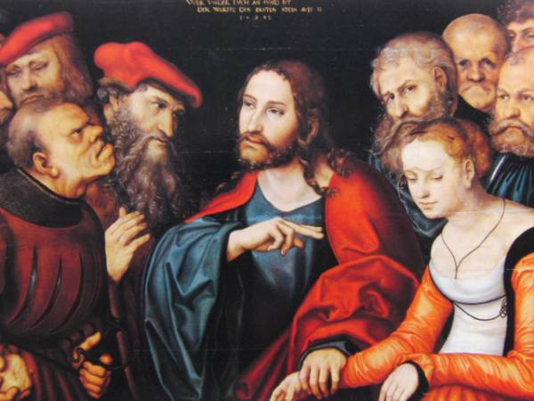 - クラナッハ、キリストと姦婦、希少画集画、新品額装付、mai
