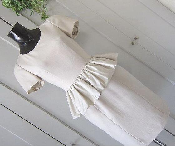 - ジーザスディアマンテ ワンピース ぺプラム バックリボン 裏地スカーフ柄 日本製 送料無料