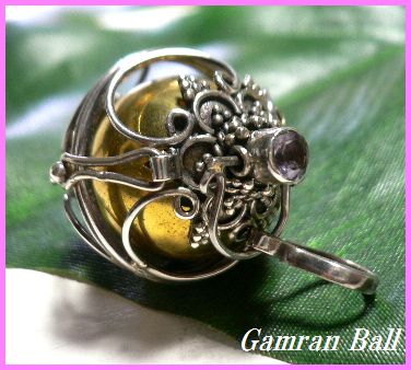 - シルバー925銀の天然石アメジスト付 ガムランボール ペンダント/バスケットtype