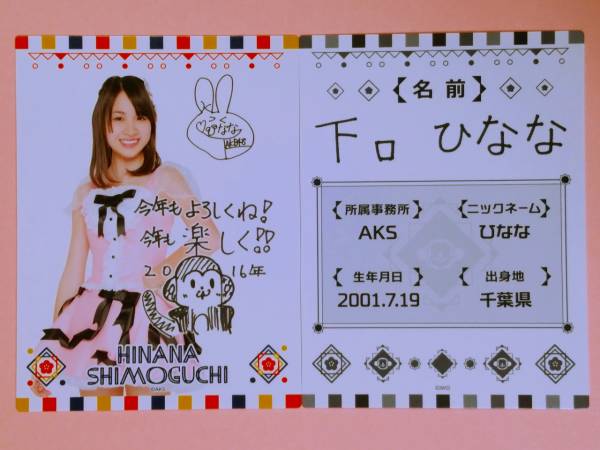 - AKB48 福袋2016 プロフィールカード 下口ひなな 2枚セット