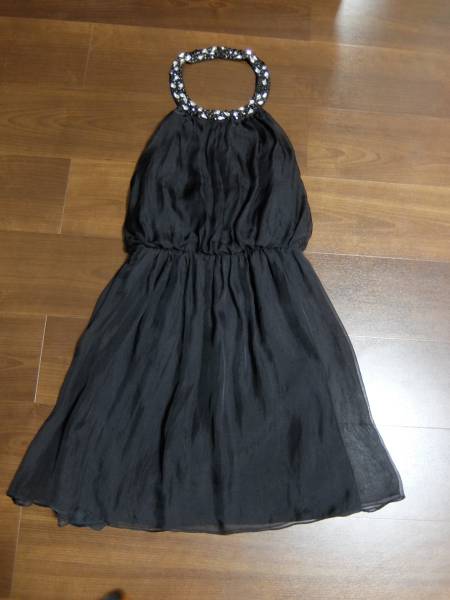 - 高級絹シルク100%ラインストーンネックゴージャスミニドレスXS