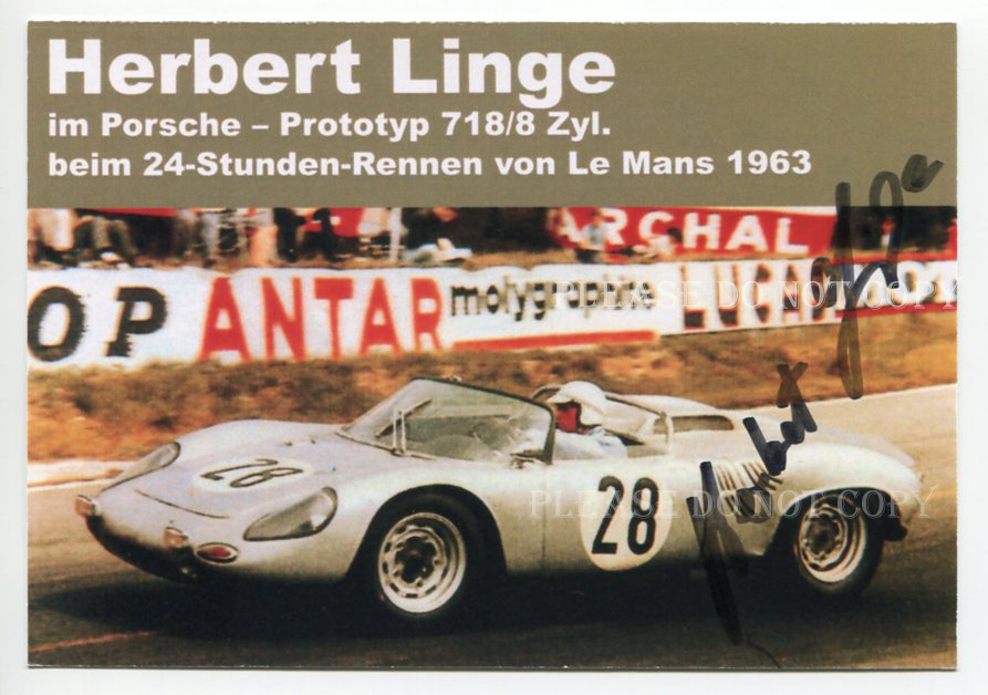 - 1963年ルマン・24 ポルシェ・マン PORSCHE - 718/8 Herbert Linge ヘルベルト・リンゲ 直筆サインフォト ドイツ ヴァイサッハ