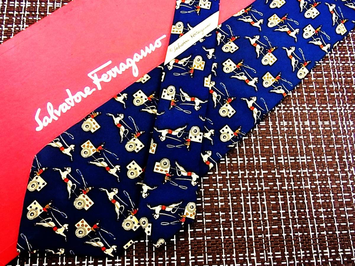 - ・ω・ ★SALE★2036★フェラガモ~トランプ 馬車~ネクタイ♪