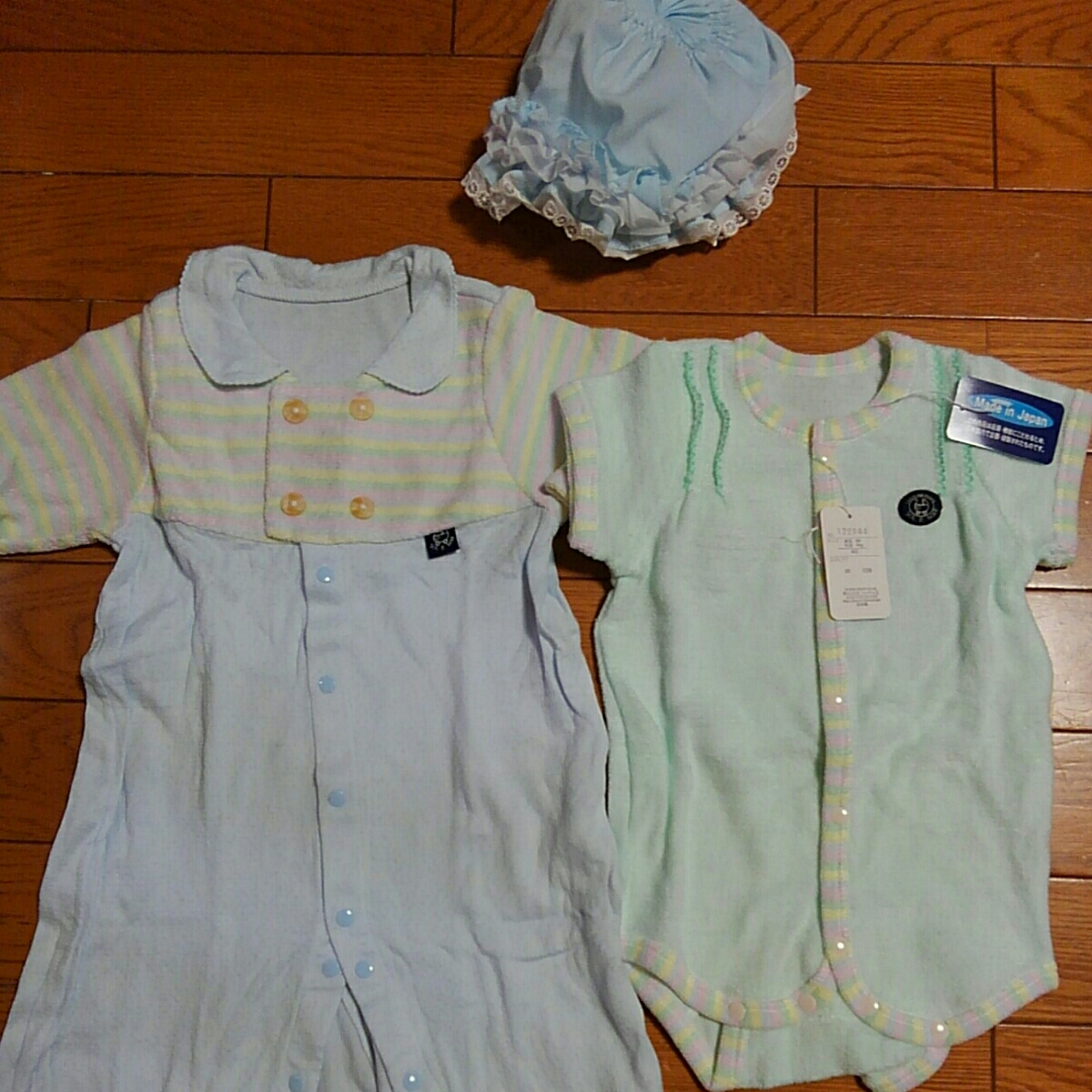 - カバーオール ショートオール ロンパース 50~60㎝ 2枚 帽子 計3点セット