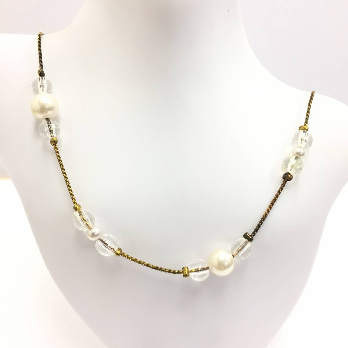 - 【ネックレス】約52+4cm ビーズとパールのシンプルアクセ アンティークな色合い