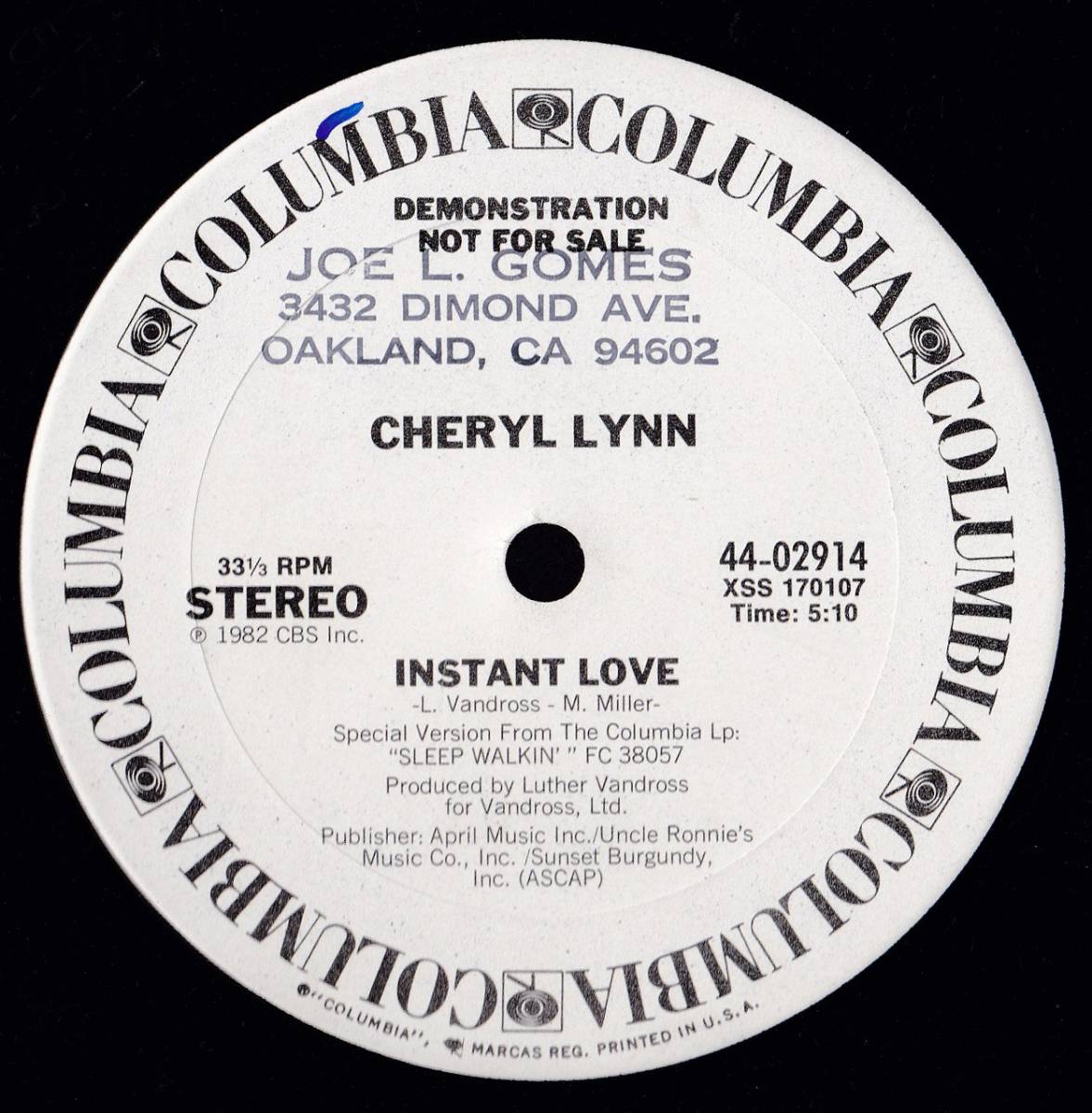 - ダンクラ12inch★CHERYL LYNN / Instant love★promo盤・Columbia★