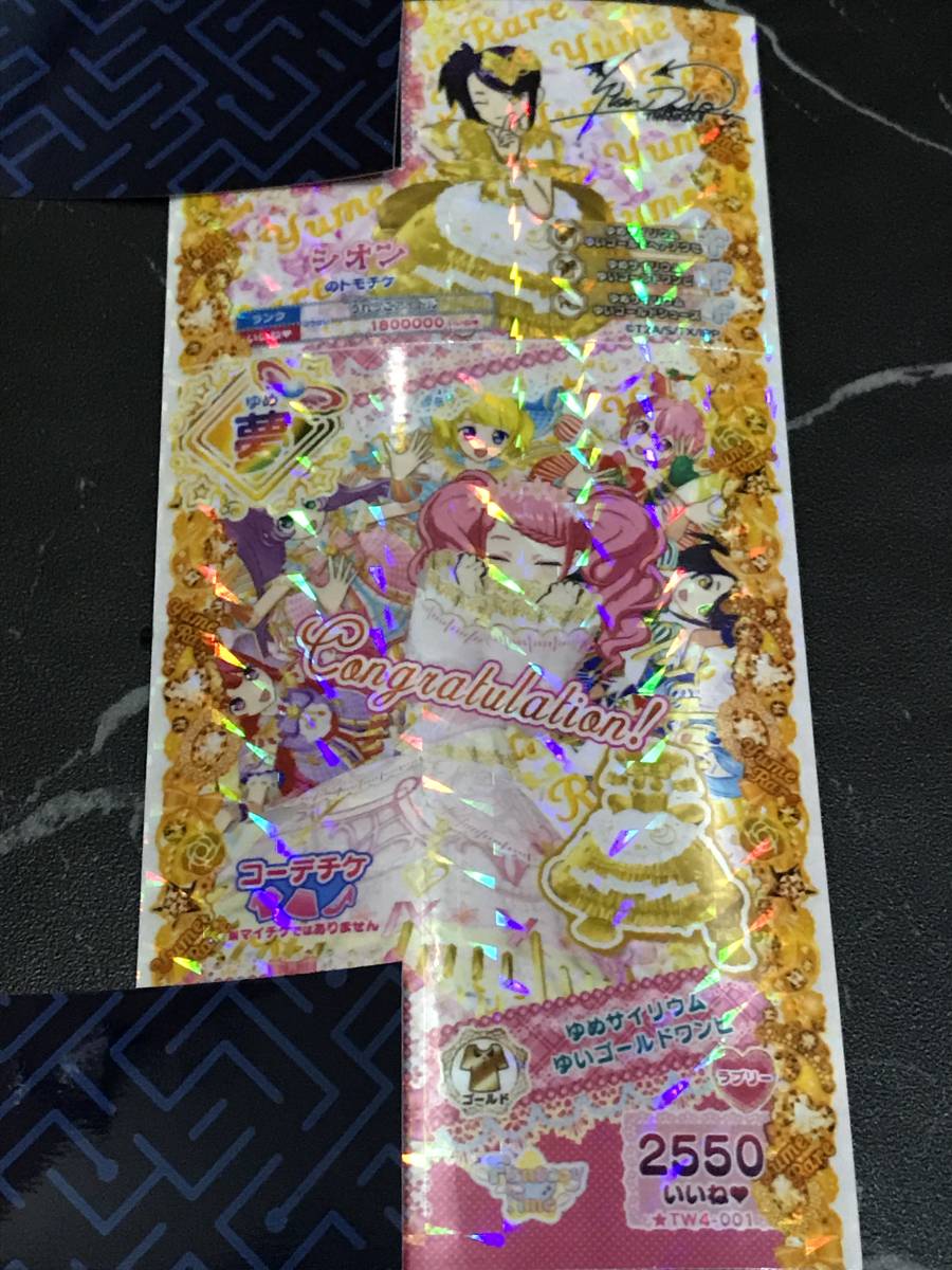 - 送料無料■プリパラタイム4弾排出おおあたりコーデ■夢レア・ゆめレア ゆめサイリウムゆいゴールドワンピのコーデチケ+シオンのトモチケ