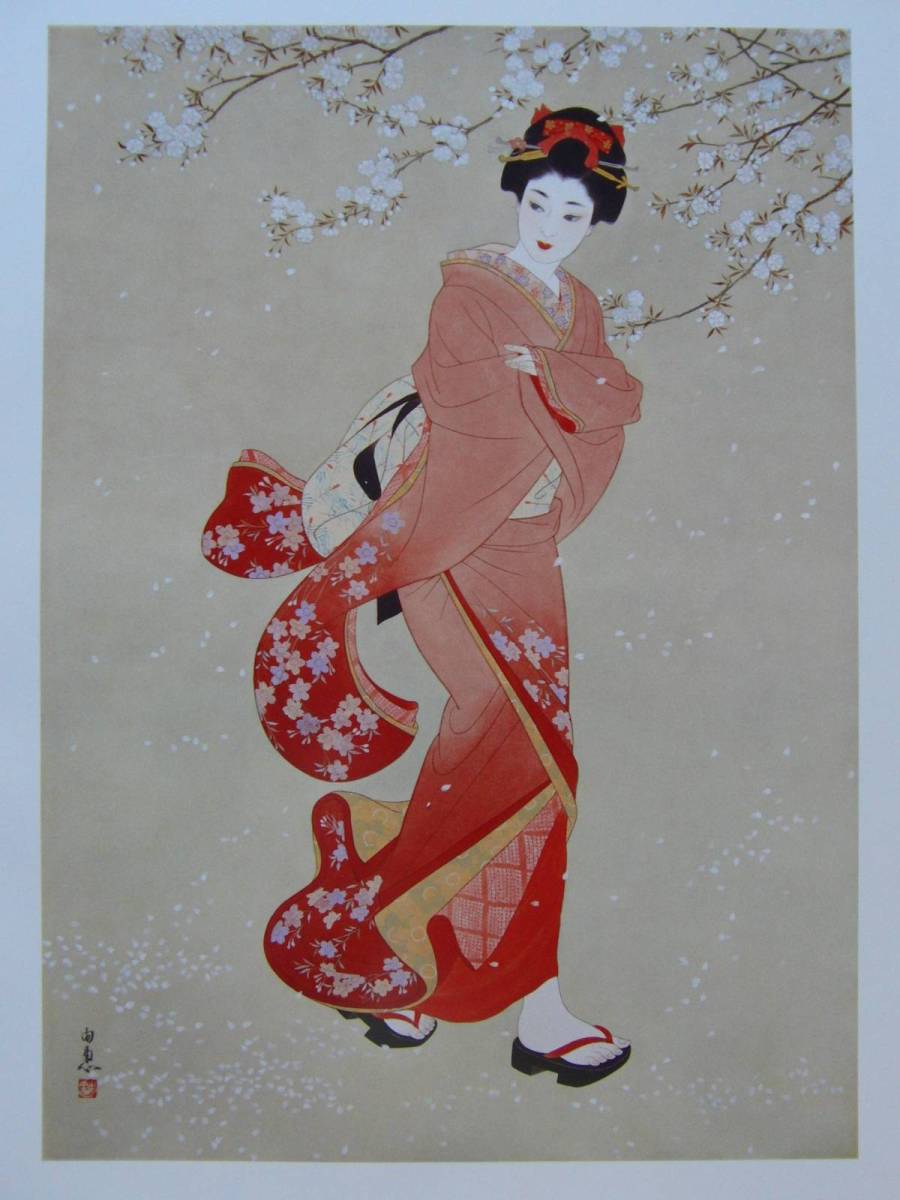 - 今野由恵、「花吹雪」、希少豪華大判画集画、高級新品額・額装付、状態美麗、美人画、日本画家、送料込み