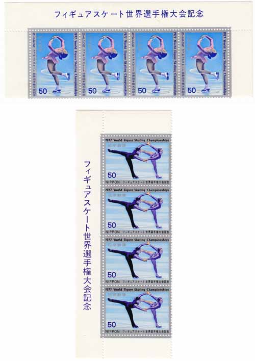 > 1977年フィギュアスケート世界選手権大会記念 ☆タイトル部分付き★ 2種×4=合計8枚セット【未使用】記念切手