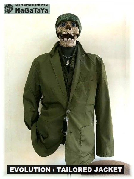 > SALE EVOLUTION エボリューション ナイロン素材 メンズ テーラードジャケット Lサイズ オリーブ 軽量 本切羽 撥水性あり
