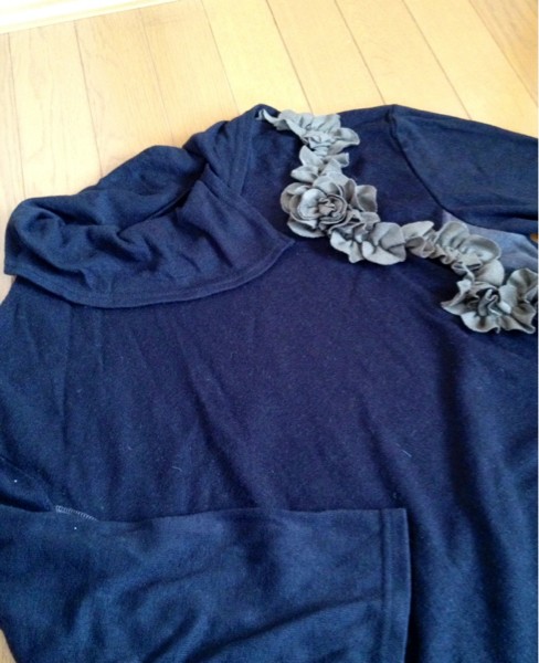 - ★折り返しネック・薔薇つき・カットソー・大きめ★