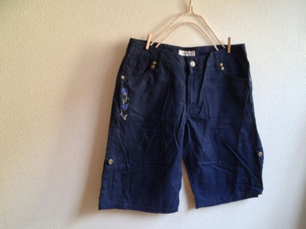 - ★HEARTLAND★紺色コットンリネンの可愛いクロップドパンツ★M★