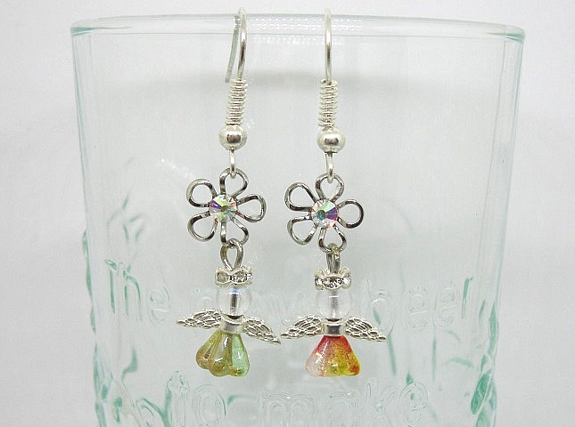 - ★天使のピアス イヤリング 小 アシンメトリー エンジェル 天使の羽 キラキラ フラワー グリーン ピンク