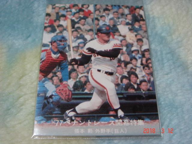 > カルビー '77年 プロ野球カード 『'77ペナントレース開幕特集』NO.3(張本/巨人) 青版