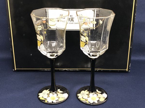 - 未使用品★カメイガラス 如璃庵 (ジョリアン)ワイングラス 2客 半月盆 2枚 セット 箱あり管理1803 Z-9