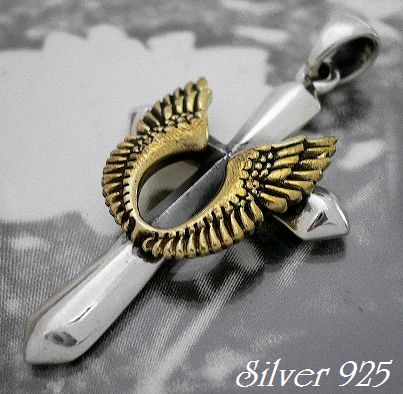- シルバー925銀のエンジェル ウイング クロス十字架ペンダント真鍮カラーmix/シルバーアクセALL50%OFF