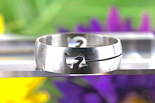 - 【送料無料】《サイズ 15号》 シルエット抜き「イルカ」デザイン ステンレス シルバー リング 指輪 アクセサリー#248