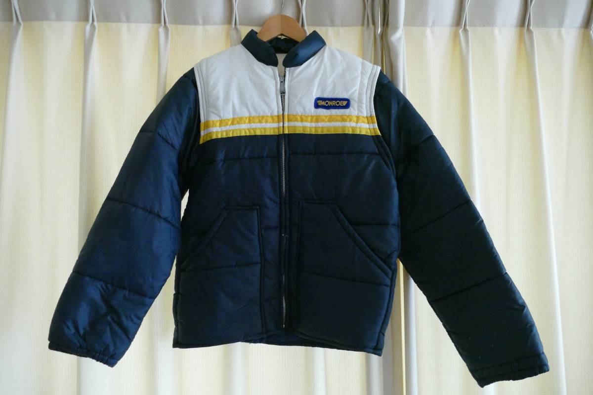 - ビンテージ オールド 中綿ナイロンジャケット 2Way ベストとしても使えます レーシング ワーク 紺