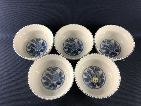 - 未使用品★ 藍染風 花柄 小鉢 5客 セット 箱あり管理1804 J-4