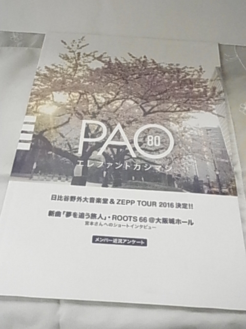 - エレファントカシマシ ファンクラブ会報 PAO80 ROOTS66@大阪城ホール 2016日比谷野音 ゼップツアー決定 エレカシ宮本浩次