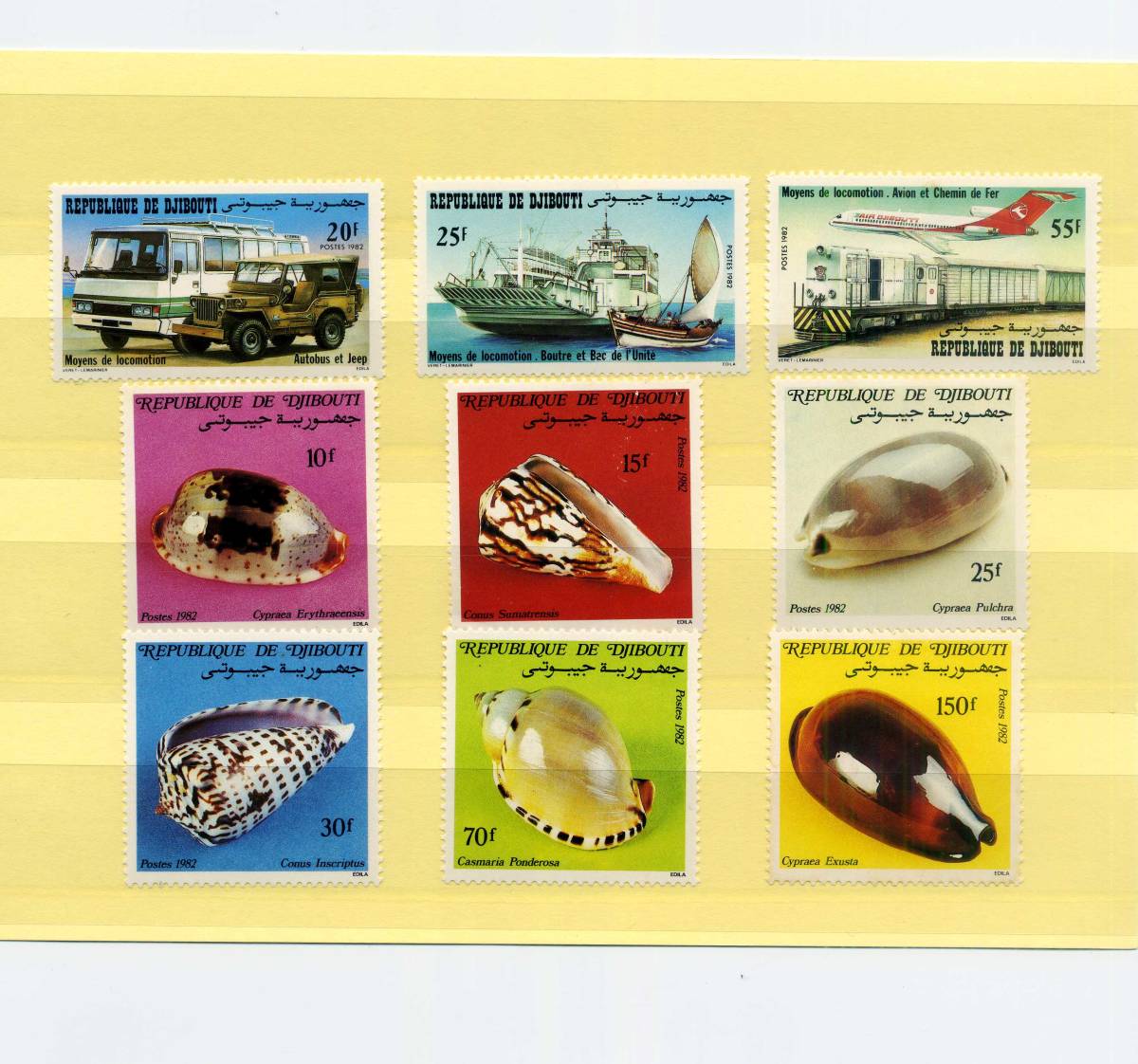 - ジブチ ・1982年◆運送 3種完, 貝 6種完◆未使用 MNH 綺麗 送料無料 Scott# 548~556◆zh-53