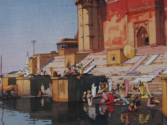 - 吉田博、ベナレスのガット、希少な額装用画集より、新品高級額装付、状態良好、送料無料、日本人画家