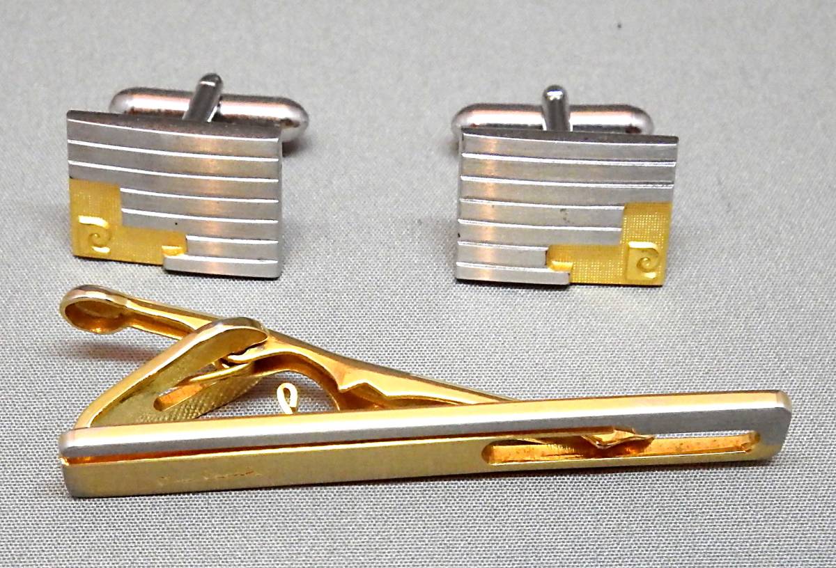 - EU-9309■Pierre Cardin ピエールカルダン カフス&タイバーセット コンビカラー 角型 中古
