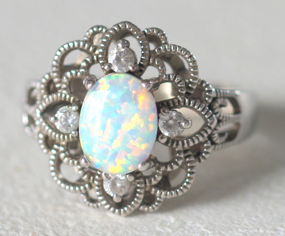 - シルバー925製 オパール風石付きリング アンティーク風 約14号