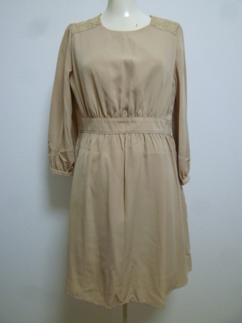 - gaminerie/ギャミヌリィ♪ベージュ肩レースフレアーワンピースM/長袖膝丈♪H77