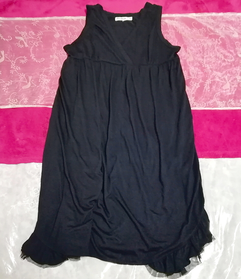 > 黒フリルネグリジェチュニックノースリーブワンピース Black frill sleeveless negligee tunic dress