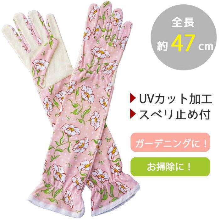 - 丸和貿易 UVカット加工手袋 マルチグローブ ロング ピンクフラワー