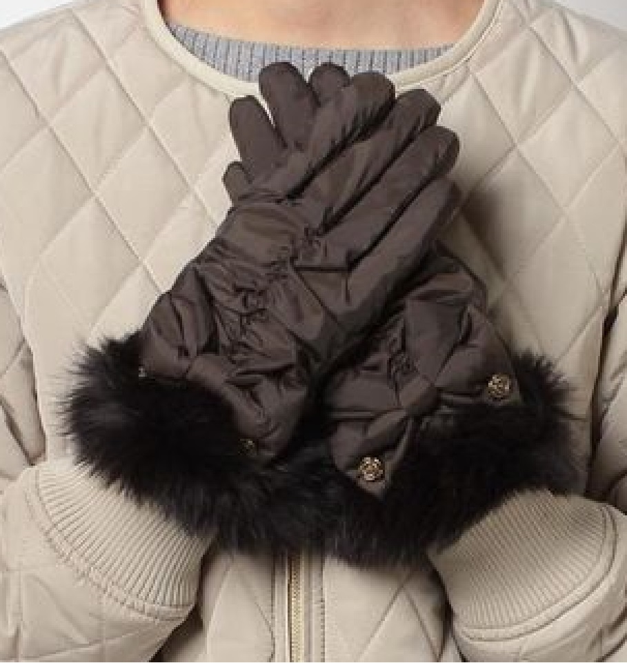 - 837◇ファー付ナイロン手袋 ブラウン 茶 axes femme アクシーズ ファム FD634X70 5本指 グローブ gloves 小物 アクセ アクセサリー