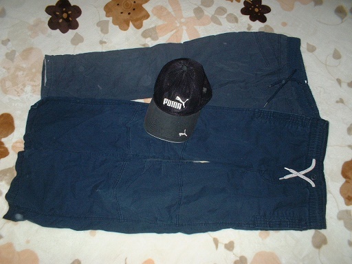 > S 即買☆Gap紺パンツ140cm&ザラキッズZara紺パンツ140cm&PUMAプーマ黒帽子フリーサイズキャップ 3点セット