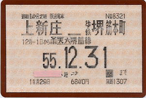 - 阪急電車・使用済定期[上新庄-地下鉄堺筋本町] (H58)