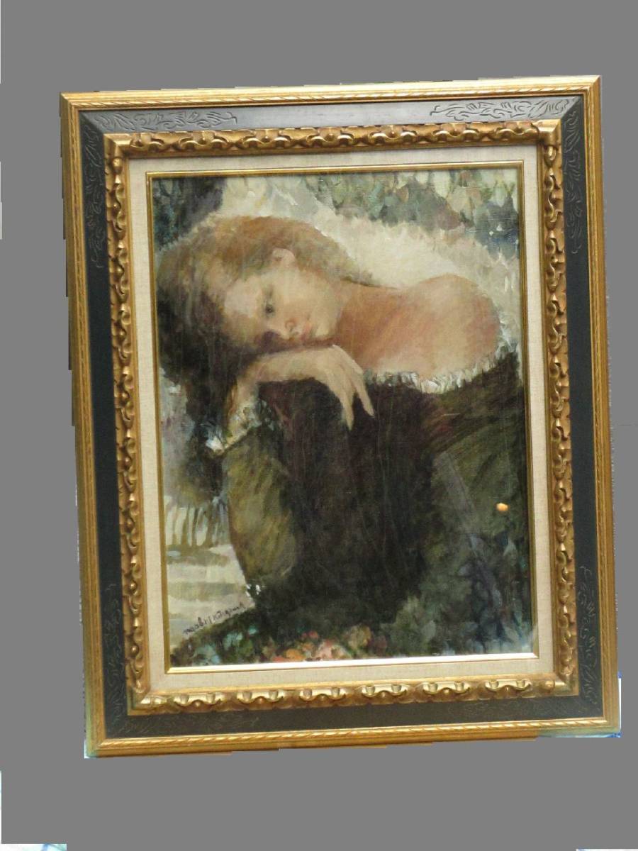 - No81 P12号 油絵 真筆 片山直「ひとり」文部大臣賞他受賞、神戸パステル画会代表他