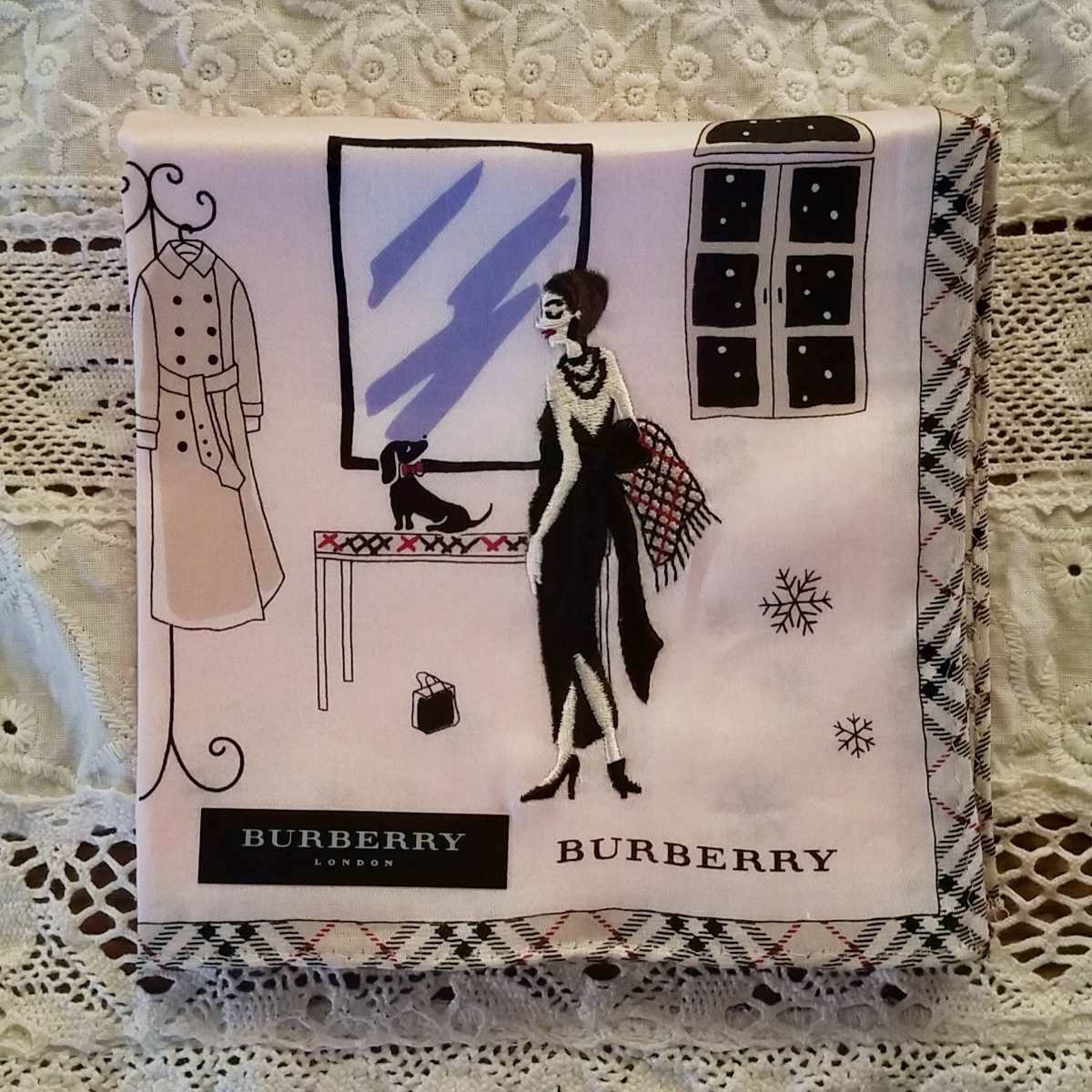 - レア BURBERRY バーバリー ハンカチ 女の子柄 刺繍 新品