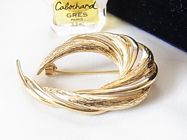 - 美しく流れるようなデザイン ゴールドカラーとマットゴールドカラーのコンビカラー 上品な印象のブローチ▲