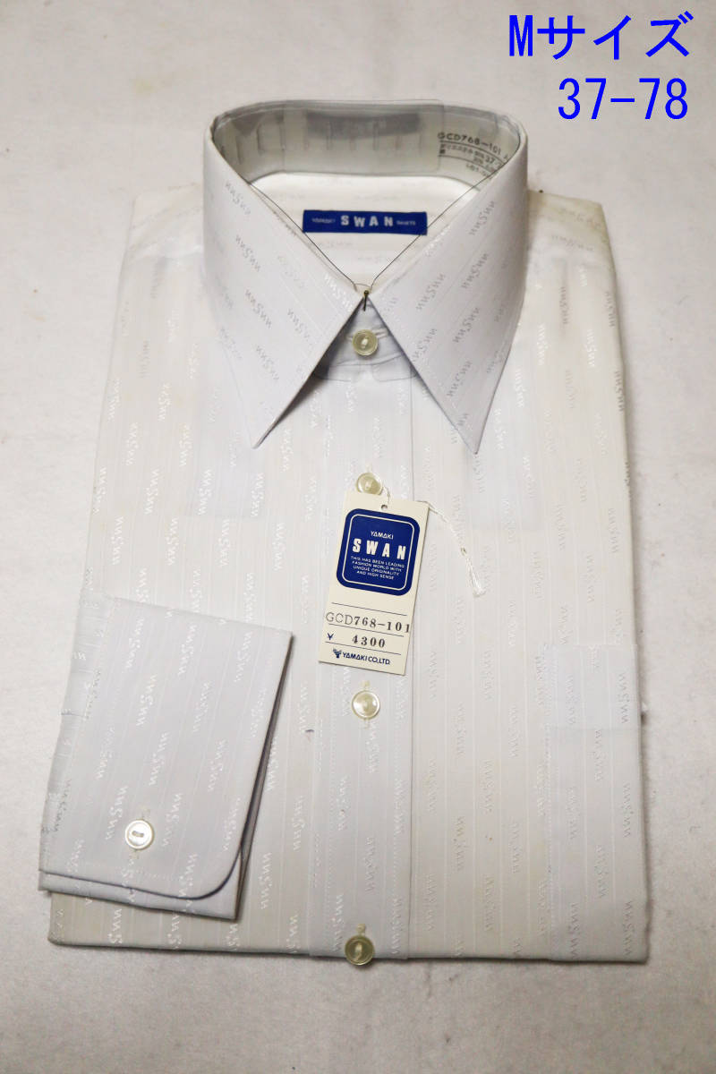 - 029 長袖Yシャツ 白 地柄 紳士 メンズ Mサイズ SWAN ヤマキ わけあり 未使用品 長期保管品