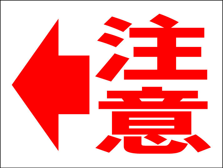 - シンプル看板 「注意(矢印左)」Mサイズ 工場・現場 屋外可(約H45cmxW60cm)