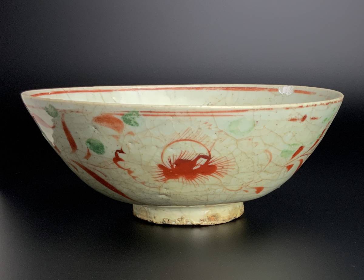 - 明 漳州窯 紅彩花卉紋碗 共箱 中国 古美術