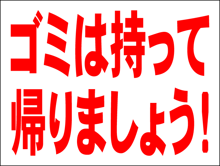 - シンプル看板 「ゴミ持って帰りましょう!」Mサイズ <マーク・英語表記・その他> 屋外可(約H45cmxW60cm)
