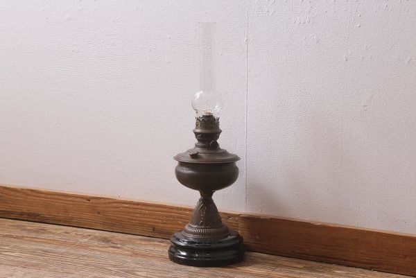 - R-039799 イギリスビンテージ ヴィンテージ雑貨 陶器製の土台が目を引くオイルランプ(灯油ランプ、置き型ランプ)(R-039799)